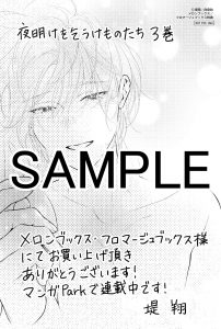 「夜明けを乞うけものたち」3巻(堤翔)の発売を記念して、下記の特典を配布します。